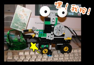 小波是使用 LEGO MindStorms 所製作的,這是個好玩的玩具,有不少外國的強者做出令人驚訝不已的成品,我做的這個超陽春機器人跟他們比起來,實在是放不上檯面 ^^""。 做這個只是好玩而已,主要是看某熱門線上遊戲的看板上,吵BOT的問題吵得很兇,並且話題還岔到十萬八千里外(比如請菲傭掛網行不行咧,用機器手臂來掛行不行咧)。覺得有點可笑,所以就把庫存的玩具拿來做一做,不過我只有玩軒網。說實在的,還沒真的用小波掛網過........(沒固定好的話,隔天大概會看到跌倒在鍵盤下,還在那繼續動作的小波吧 ( 汗;)) 相關網址連結 http://mindstorms.lego.com/